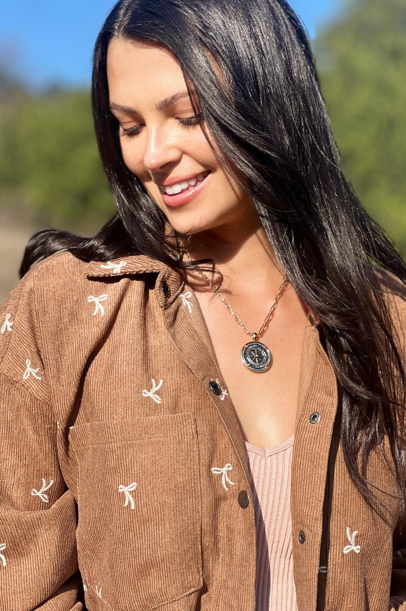 Take on New Adventures with the Compass Coin Necklace! This bold necklace features a functional compass, perfect for the risk-taker in you. Never lose your way again and add a touch of adventure to ay outfit.