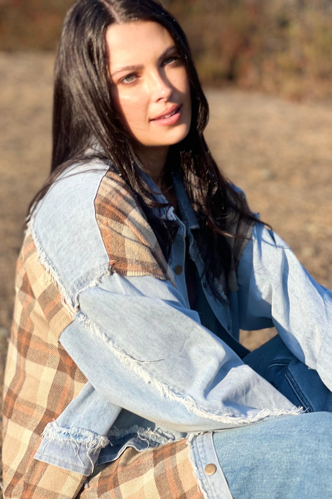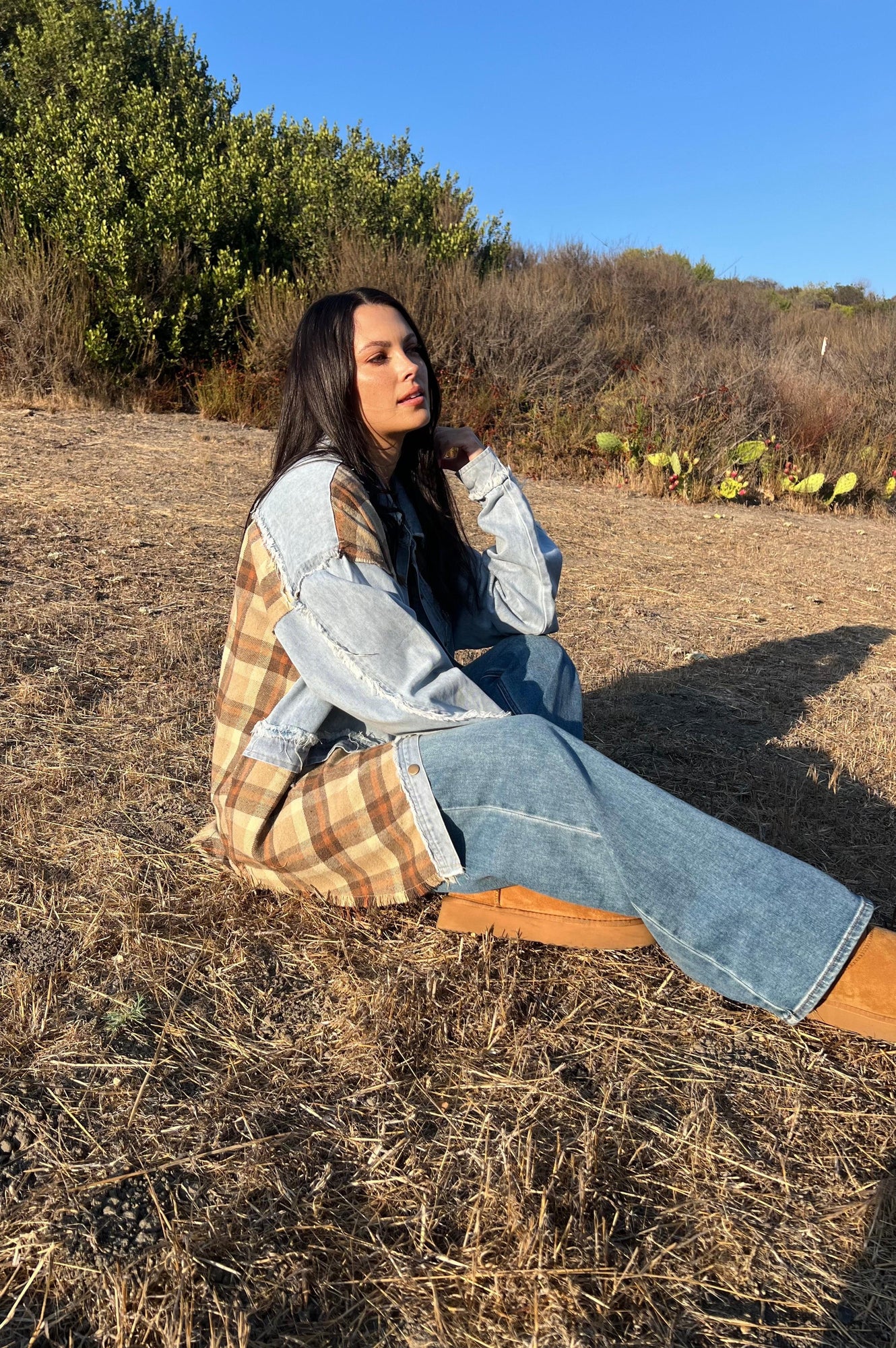 How adorable is this relaxed fi mineral wash denim plaid shirt! Wear as a shirt or jacket.